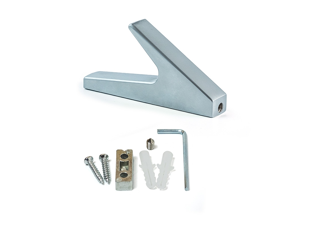 Věšák PROKOP má skryté uchycení. Na stěnu se dvěma vruty přišroubuje připevňovací komponent. Na tento komponent se nasadí věšák a na spodní straně se červíkem a přiloženým imbusovým klíčem přitáhne ke komponentu.