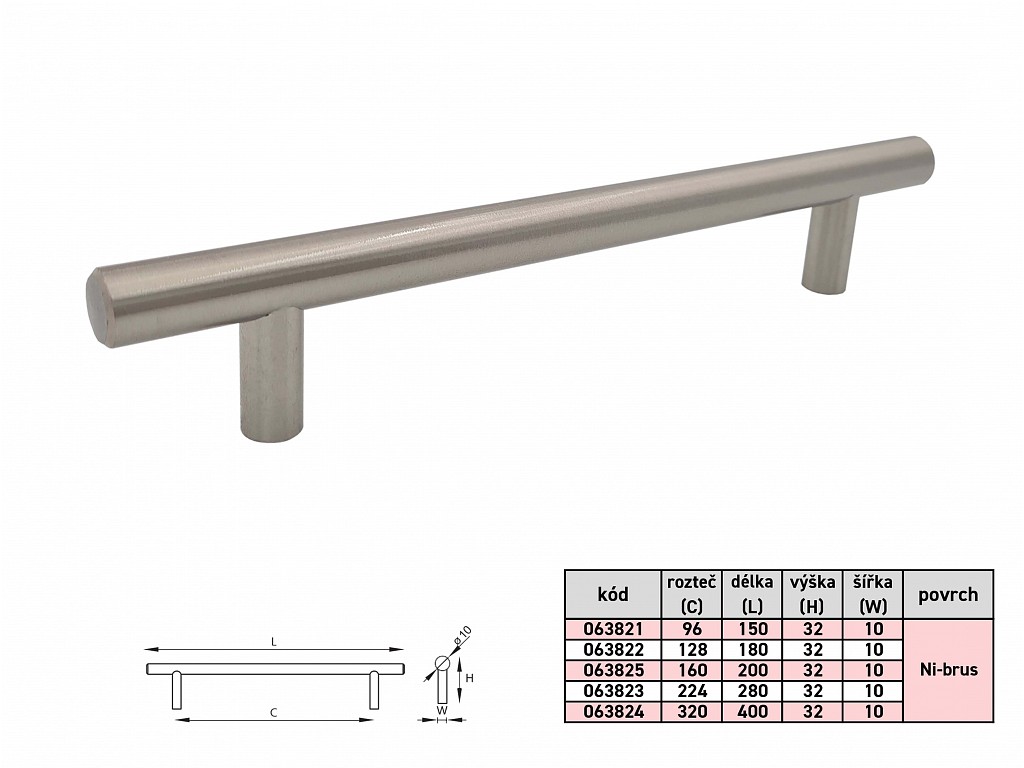 Satos Prostějov a.s > Nábytkové kování a závěsy > Nábytkové úchytky > HRAZDA úchytka 10/64/116mm NiB