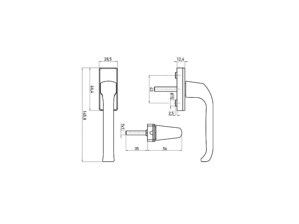 Satos Prostějov a.s > Stavební kování a závěsy > Okenní kování > Plastové okenní kování > Klika okenní hliníková 7/35 BRONZ F4