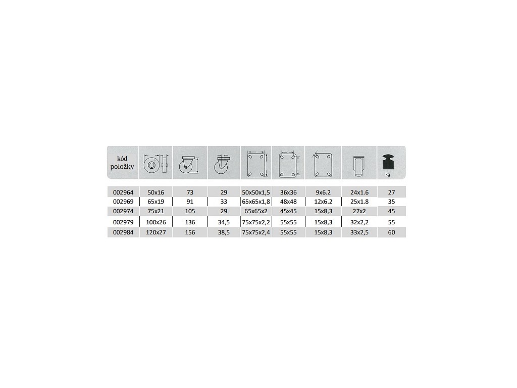 Satos Prostějov a.s > Stavební kování a závěsy > Kolečka průmyslová > Kolečko 120x27 otočné s brzdou/plotna šedá guma 60 kg