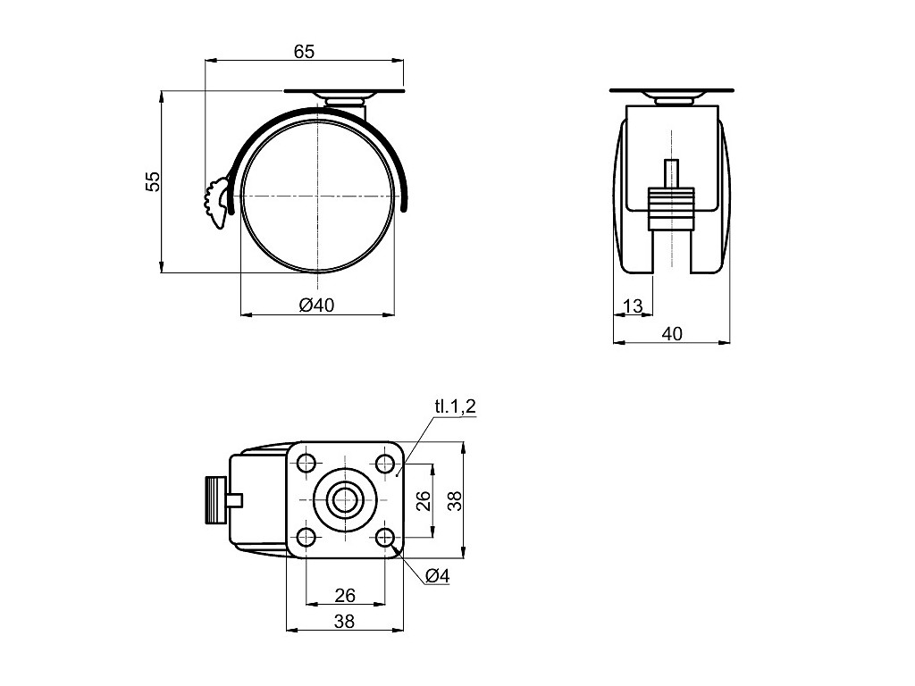Satos Prostějov a.s > Nábytkové kování a závěsy > Kolečka nábytková > Kolečko ROL-N 40-kovová plotýnka, brzda