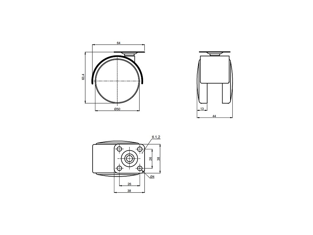 Satos Prostějov a.s > Nábytkové kování a závěsy > Kolečka nábytková > Kolečko ROL-N 50-kovová plotýnka