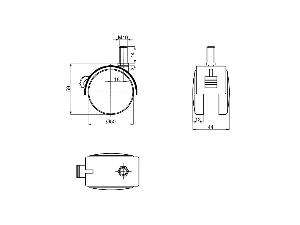 Satos Prostějov a.s > Nábytkové kování a závěsy > Kolečka nábytková > Kolečko ROL-N 50-šr.M10-brzda TWT50B