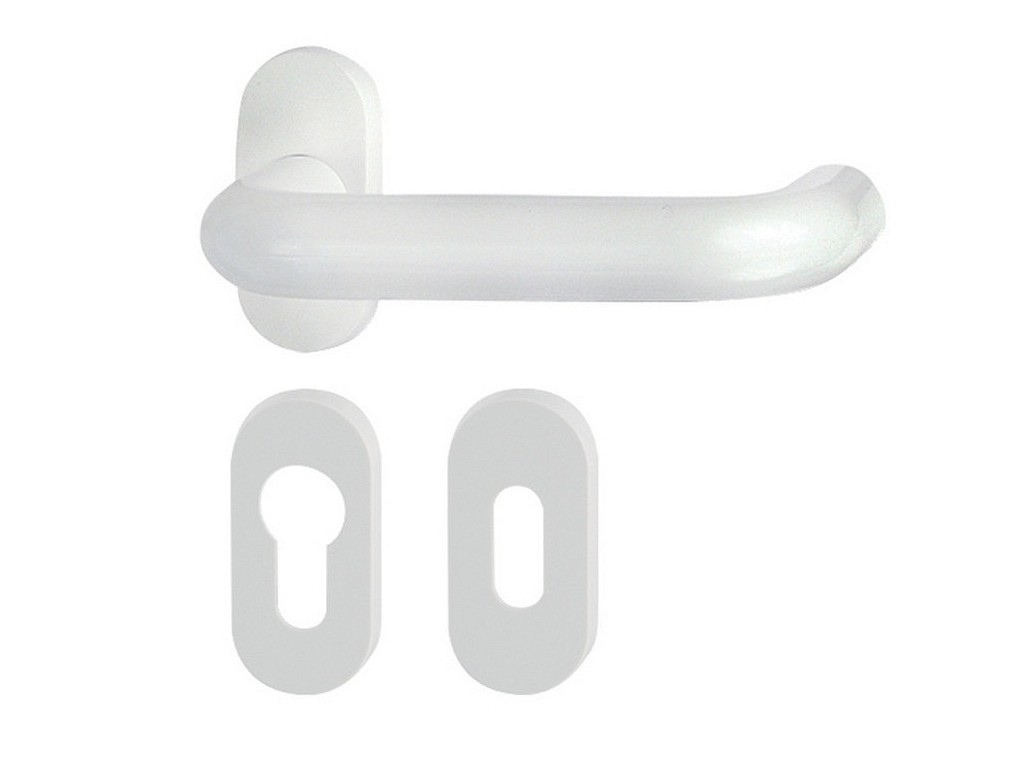 Satos Prostějov a.s > Stavební kování a závěsy > Dveřní kování > Plastové kování > Kování dveřní rozeta H 03 klika/klika OK/FAB bílá