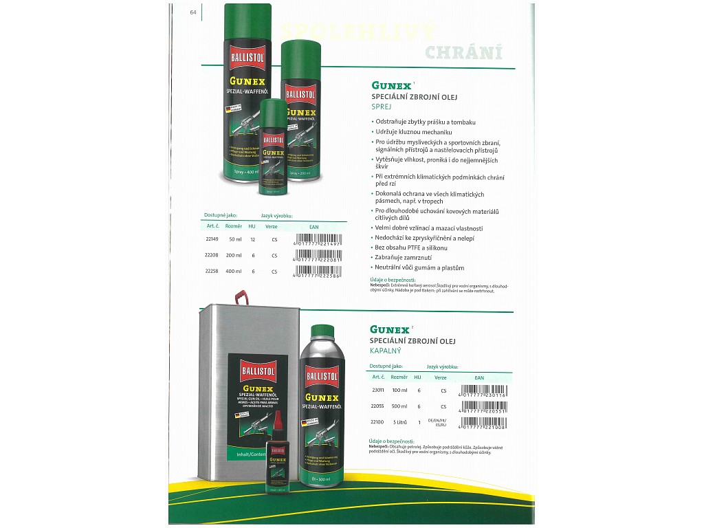 Satos Prostějov a.s > Dílna, zahrada, nářadí > Oleje a spreje a čistící prostředky > Olej na zbraně 100ml, Gunex spec.oil 100, Ballistol 23011