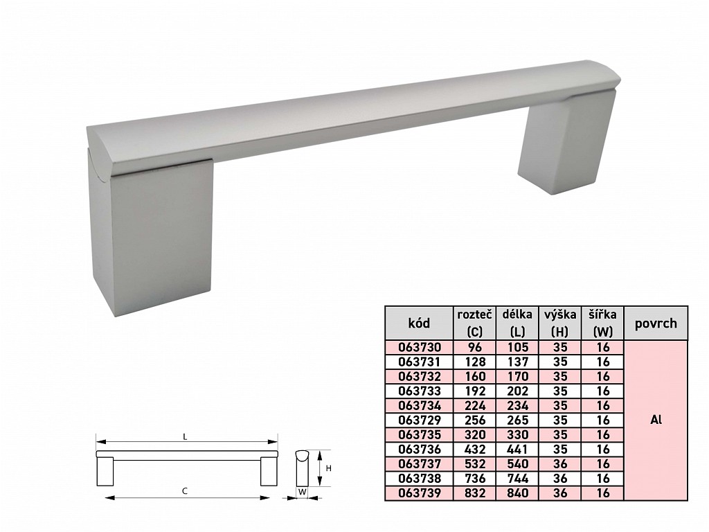 Satos Prostějov a.s > Nábytkové kování a závěsy > Nábytkové úchytky > Madla kuchyňská > PORTA úchytka Al 192/202 mm