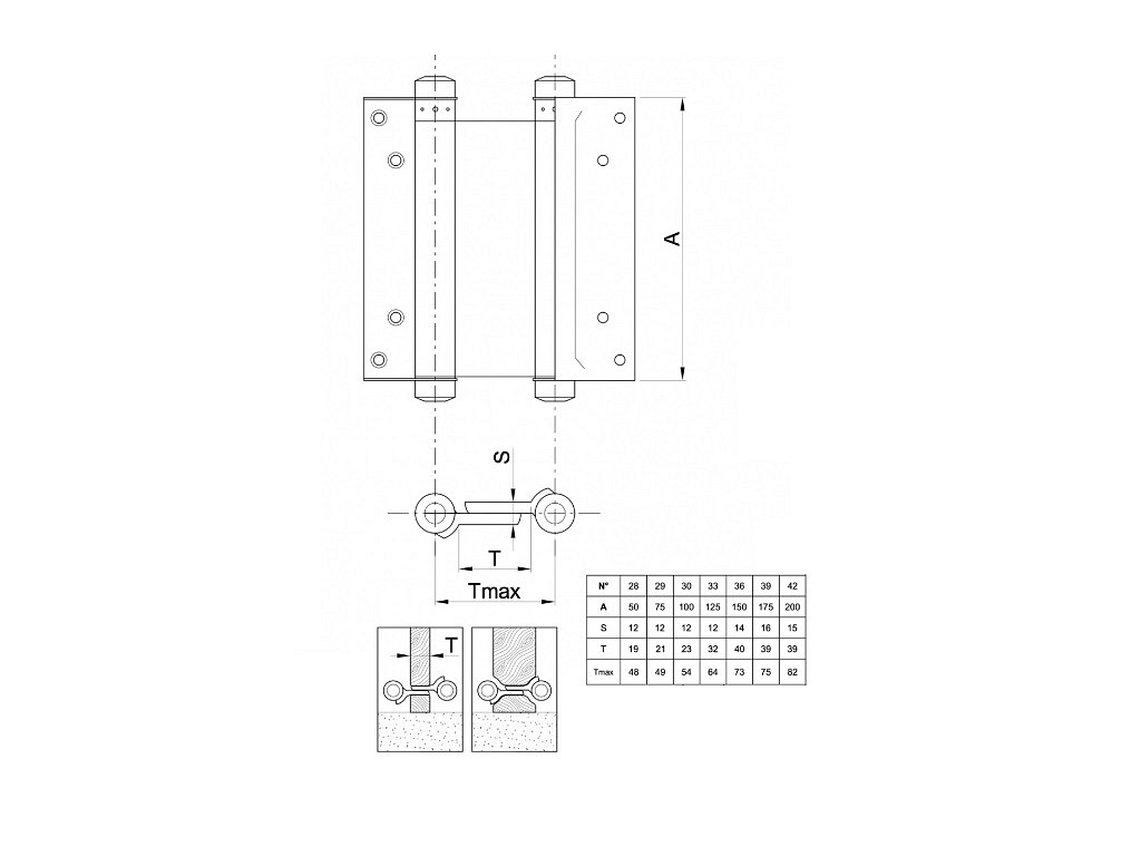 Satos Prostějov a.s > Stavební kování a závěsy > Závěsy dveřní, okenní > Závěsy pružinové > Pružinový závěs 39/175 Ni F1-107039 max 55kg/1pár/850mm š.