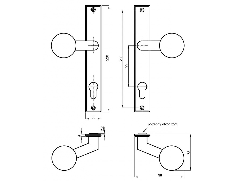 Satos Prostějov a.s > Stavební kování a závěsy > Dveřní kování > Dveřní kliky se štíty > SOFIE kování FAB-90 pevná vyosená koule ; pevná vyosená koule NEREZ