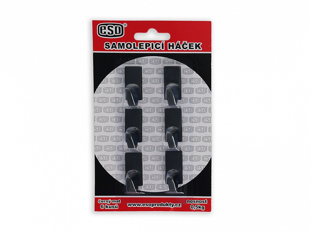 Satos Prostějov a.s > NOVINKY > 12/2025 > Věšák samolepící ČERNÝ MAT 15x35mm bal. 6ks ESO