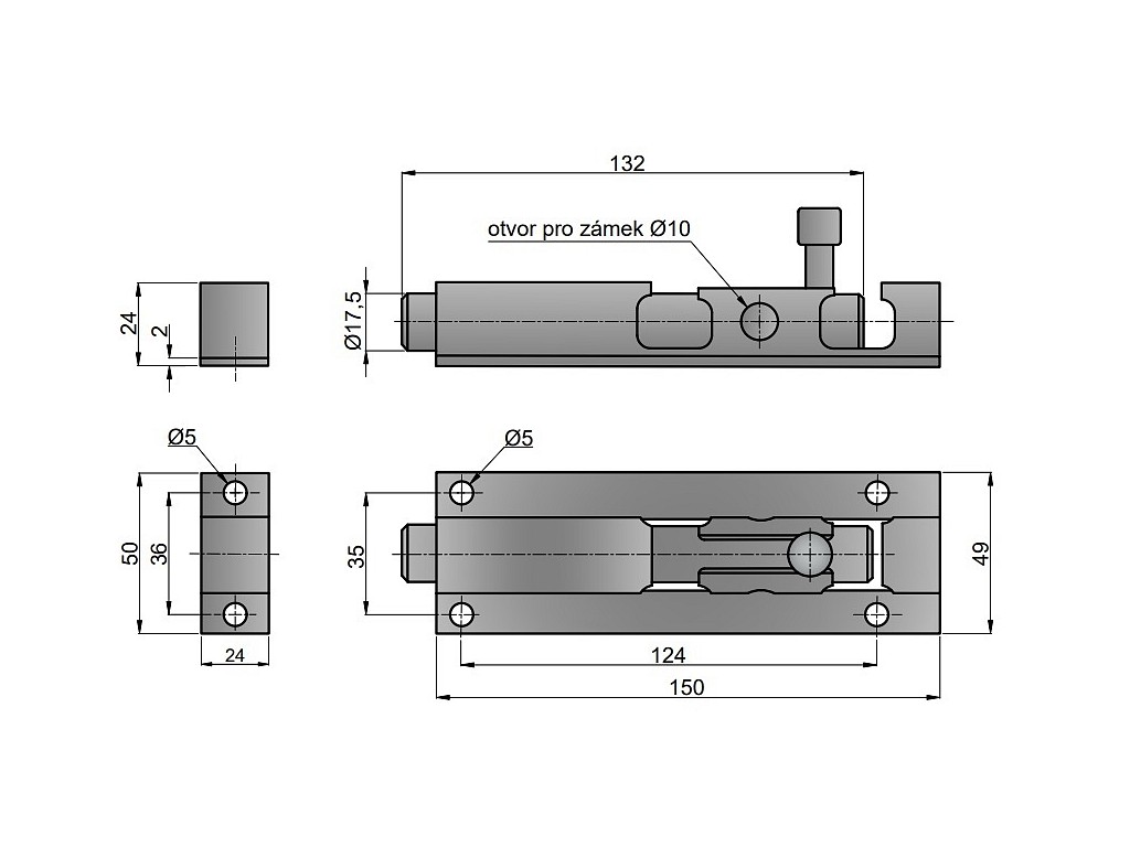 Satos Prostějov a.s > Stavební kování a závěsy > Zástrče, petlice > Zástrč uzamykatelná Bílý zinek A150xC48XD17.5
