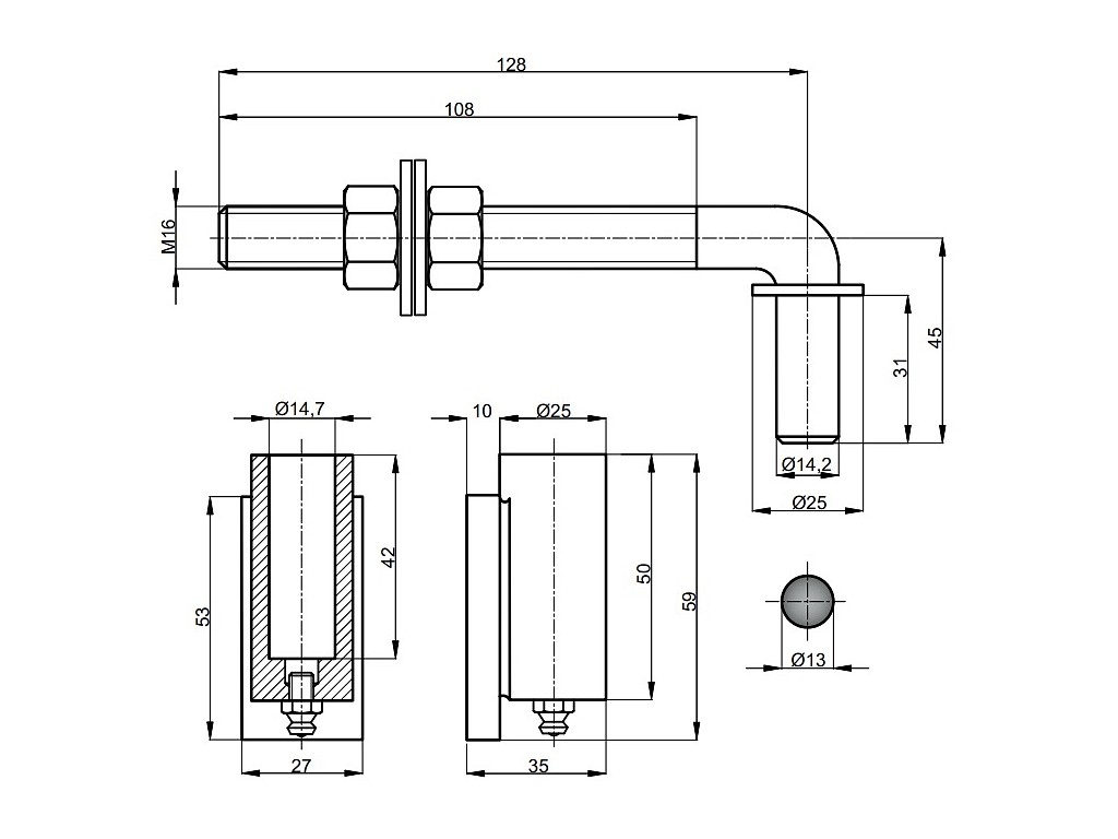 Satos Prostějov a.s > Stavební kování a závěsy > Závěsy dveřní, okenní > Závěsy seřiditelné > Závěs regulovatelný M16 102mm Černý lak