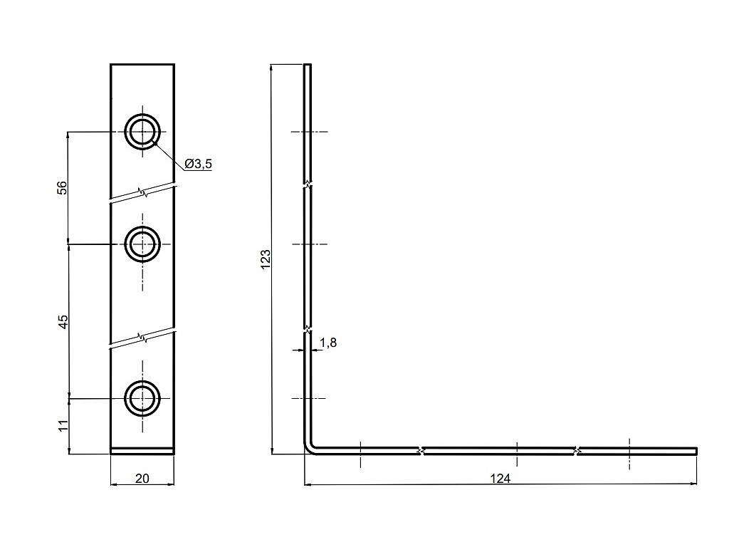 Satos Prostějov a.s > Stavební kování a závěsy > Úhelníky, rohovníky, konzoly > 11129 úhelník K 125 Zn (25ks)