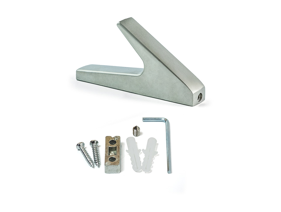 Věšák PROKOP má skryté uchycení. Na stěnu se dvěma vruty přišroubuje připevňovací komponent. Na tento komponent se nasadí věšák a na spodní straně se červíkem a přiloženým imbusovým klíčem přitáhne ke komponentu.