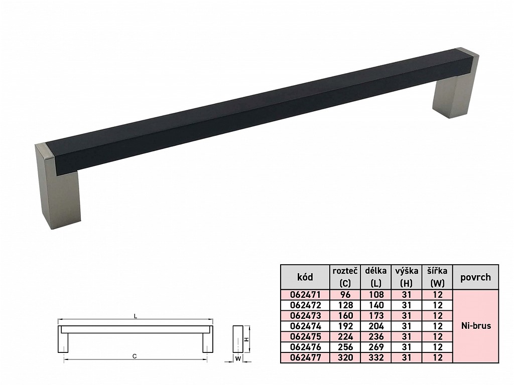 Satos Prostějov a.s > Nábytkové kování a závěsy > Nábytkové úchytky > Úchytky kovové > JULIE úchytka 12/192(205) ČERNÁ/ Ni-broušená