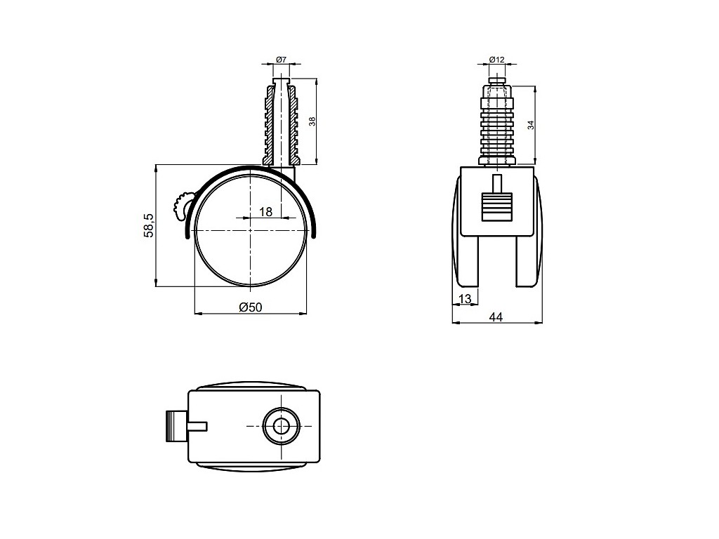 Satos Prostějov a.s > Nábytkové kování a závěsy > Kolečka nábytková > Kolečko ROL-N 50-čep 8+pouzdro+brzda
