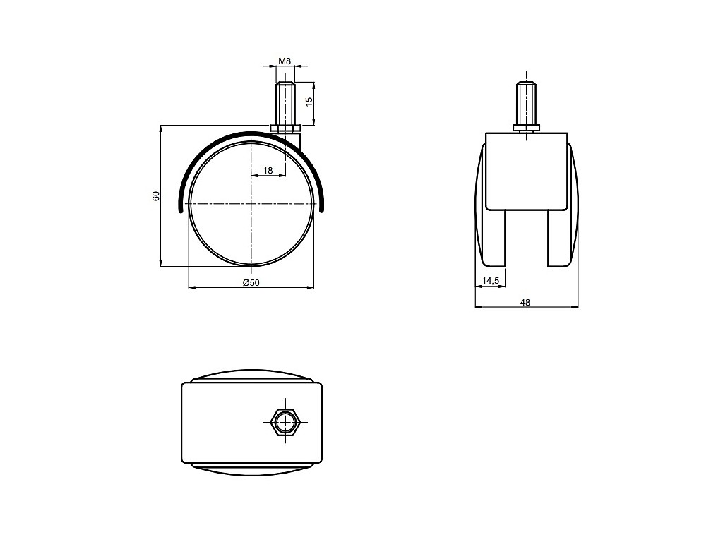 Satos Prostějov a.s > Nábytkové kování a závěsy > Kolečka nábytková > Kolečko ROL-N 50-šroub M8