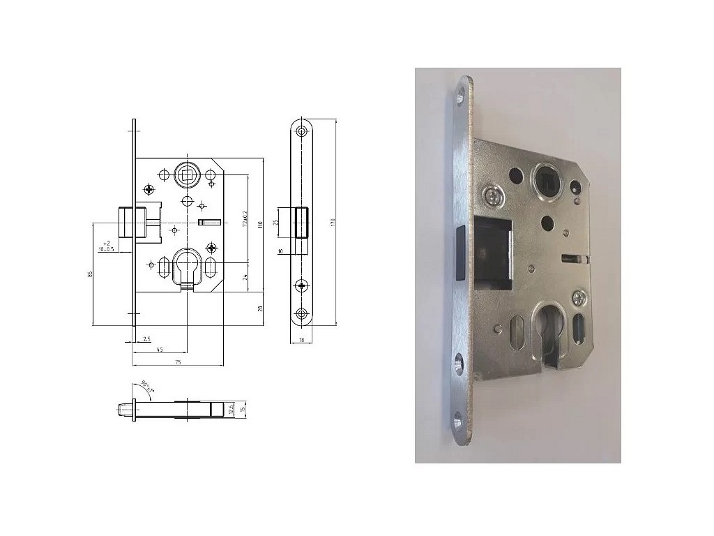 Satos Prostějov a.s > Zámky, vložky, klíče > Zadlabací zámky do dveří > Magnetický zámek K041 75/45 Fab P/L čelo nerez