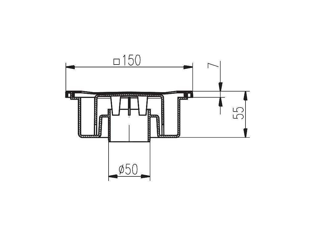 Satos Prostějov a.s > Produkty NEREZ > Podlahová vpusť DN 50/55 nerez 1/2