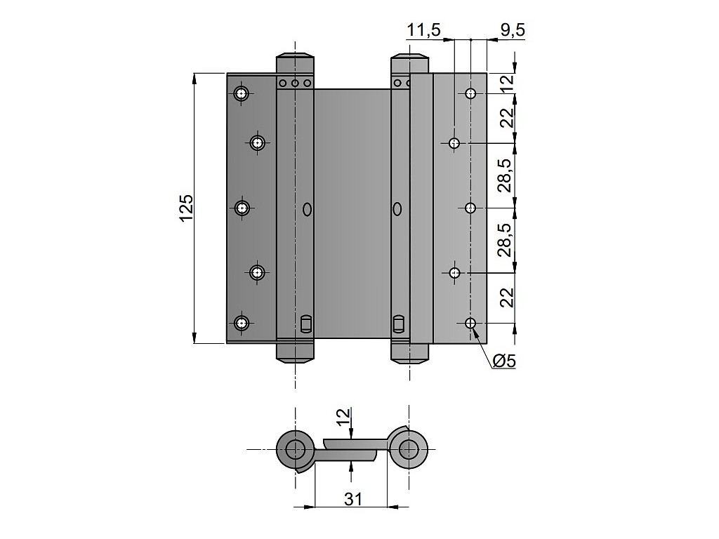 Satos Prostějov a.s > Stavební kování a závěsy > Závěsy dveřní, okenní > Závěsy pružinové > Pružinový závěs 33/125 Ni max 27kg/1pár/700mm š.