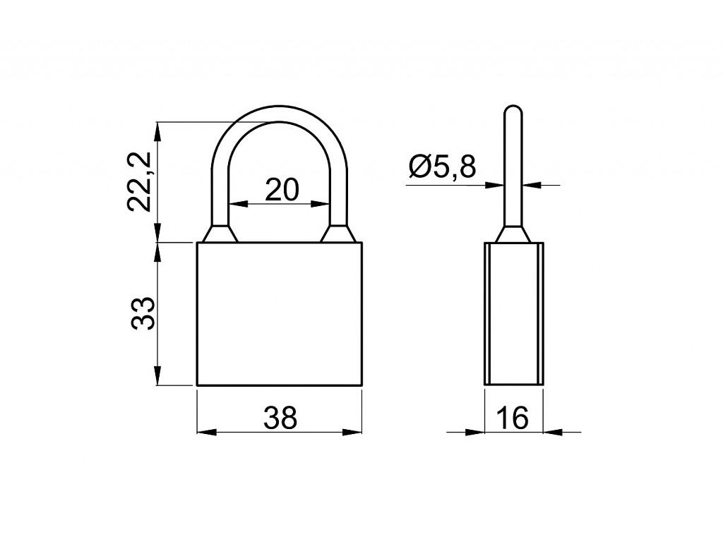 026034 - Visací zámek černý 38mm 3kl. ESO