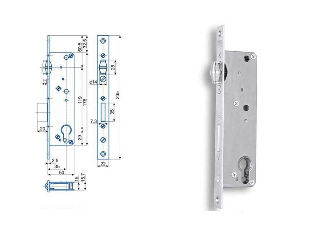Satos Prostějov a.s > Zámky, vložky, klíče > Zadlabací zámky do dveří > Zámek K445 35/50 1KS BZN váleček
