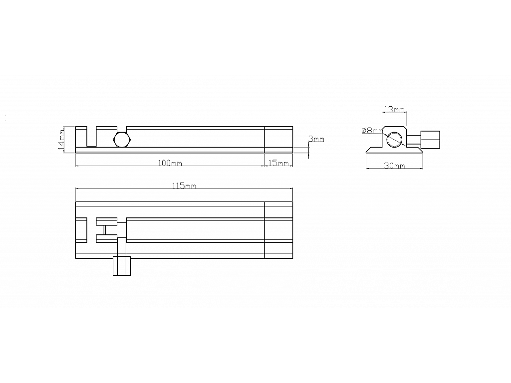 Zástrč vyrobená z eloxovaného hliníku. Délka zástrče 100mm, celková délka 116mm.