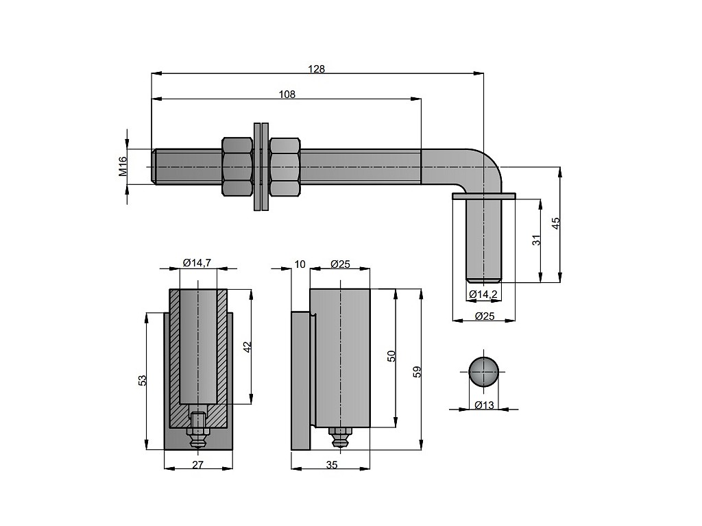 Satos Prostějov a.s > Stavební kování a závěsy > Závěsy dveřní, okenní > Závěsy seřiditelné > Závěs regulovatelný M16 102mm Černý lak